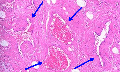 生物学上所谓的肿瘤,应该是细胞过度增生(主要是数目增加)形成了“多余”的细胞团块,比如脂肪瘤是由过多的脂肪细胞组成,纤维瘤是由过多的纤维细胞组成。血管瘤看起来或摸上去象多余的一块肉团,却是由于一嘟噜紊乱的血管堆积而成(不是一种细胞),所以,本质上人们叫它“血管瘤”,却是一种杂乱血管团,生物学上叫“错构”,或者叫“畸形”。在名称上主要取决于这个杂乱的血管团主要由什么样的血管为主而命名,比如以静脉血管为主就叫做静脉性血管瘤、以毛细血管为主就叫做毛细血管性血管瘤、以动脉血管为主就叫做动脉性血管瘤。有的是以杂乱血管团中管腔的形状命名,比如管腔大小均匀看上去象海绵结构时叫海绵状血管瘤、如果是动脉管壁局部鼓突出来,犹如坑道中开挖了一个“猫耳洞”时叫动脉瘤,如果是动脉管壁中间被血液灌进来将管壁分开,犹如墙壁里多了个夹层时叫做夹层动脉瘤。