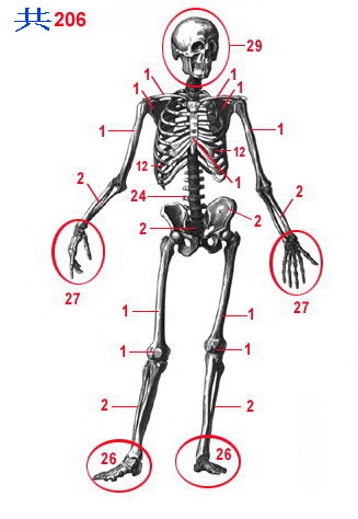 206是个什么样的数字,要把这个数字塞进人多体内,那是个不寻常的排列(图1)。在这206个兄弟的通力合作之下,可以出现任何你可以预知的行动作为,甚至不可想象的惊险动作大片,人类的任何“招风”都得叫这206兄弟连中的某个或某几个出工!