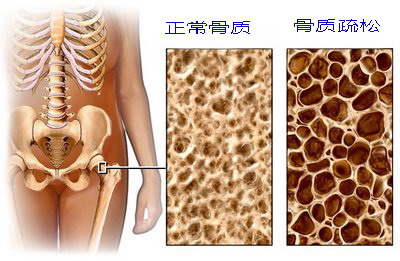 在30岁前,身体制造的骨质比流失的要多,此时,骨头是“坚硬的”(图5)。在老龄化的过程中,骨的降解开始超过了骨的积聚,以致骨质的坚硬程度下降。一旦这种骨质的流失达到某一个阈值,人就得了的骨质疏松症。尤其是绝经以后,雌激素缺乏和骨质疏松症的发展有很直接的关系。骨质疏松症往往被称为”沉默的疾病” ,因为骨质流失是没有病征的。人们可能并不知道自己患有骨质疏松,直到有一天他们的骨骼变得那么脆弱,以致于突然的牵张,撞击或跌倒就造成骨折或脊椎崩溃。脊椎崩溃的症状是:感受到有严重的背部疼痛, 看到自己越来越矮或脊柱畸形,如弯腰驼背。